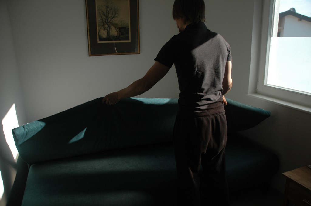 Das Ausklappen ist mit wenigen Handgriffen zu erledigen und erfordert keine große Kraftanstrengung. Trotzdem fordern wir ein wenig Geschick, denn der Matratzenschoner muss selbst angebracht werden. Bitte unbedingt benutzen – dieser ist waschbar und sorgt so für die nötige Hygiene bei wechselnden Gästen.